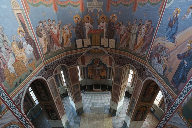Накануне одного из главных христианских праздников в соборе Александра Невского на главной площади Волгограда завершили роспись центрального алтаря: в северной апсиде работы выполнены на уровне семи метров, уже написана композиция «Воскресение», а в южной апсиде завершается роспись фрески «Рождество Христово».