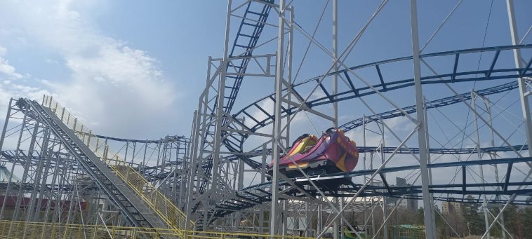 Смонтировали аттракцион ещё год назад, но из-за пандемии он так и не заработал. С середины марта здесь закипели работы, специалисты отлаживали системы экстремального развлечения, проходила техническая экспертиза объекта.