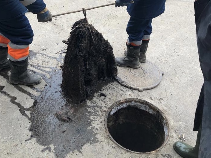 Десятикилограммовая «пробка» из обычного бытового мусора стала причиной гигантского засора канализации по улице Двинской в центре Волгограда. Огромный комок из спрессованных тряпок и пластиковых освежителей для унитазов рабочие достали накануне – только чудом засор не привёл к прорыву канализации.