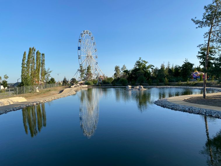 Водный аттракцион ещё до своего официального открытия стал местом притяжения посетителей ЦПКиО: люди с удовольствием гуляли по берегу пруда, выложенному камнями. Водоём площадью 850 квадратных метров и объёмом более кубометров оснащён современной системой фильтрацией и очистки воды – вскоре в нём поселятся черепахи. Благоустройство прилегающей территории завершится в течение ближайших трёх недель. Как рассказал Volganet.net директор парка Андрей Еркин, у пруда высадят 30 деревьев и 10 кустарников и многолетних трав, построят арку для выездных свадебных регистраций и крытую беседку для проведения детских дней рождения. По периметру пруда расставят шезлонги.