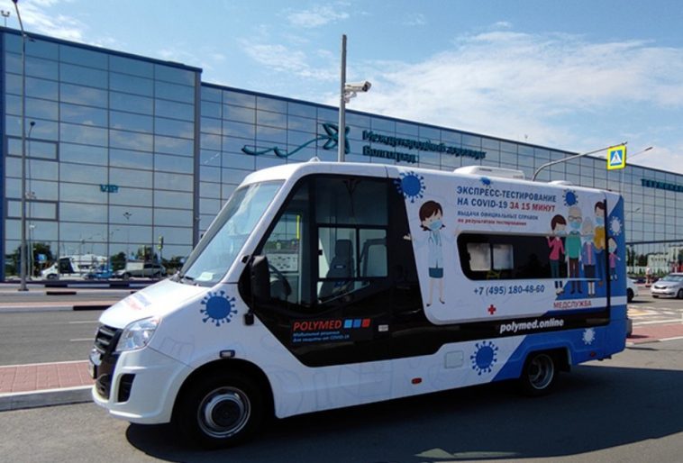 Мобильный пункт находится на привокзальной площади рядом с терминалом. Выбрать и оплатить услугу нужно в информационном окне на первом этаже терминалов. При обращении потребуется паспорт РФ, в случае вылета за границу – загранпаспорт. Результаты экспресс-теста будут готовы уже через 15 минут, заключение ПЦР-диагностики выдаётся после проведения лабораторных исследований. Услуги предоставляются частной медицинской кампанией и являются платными.