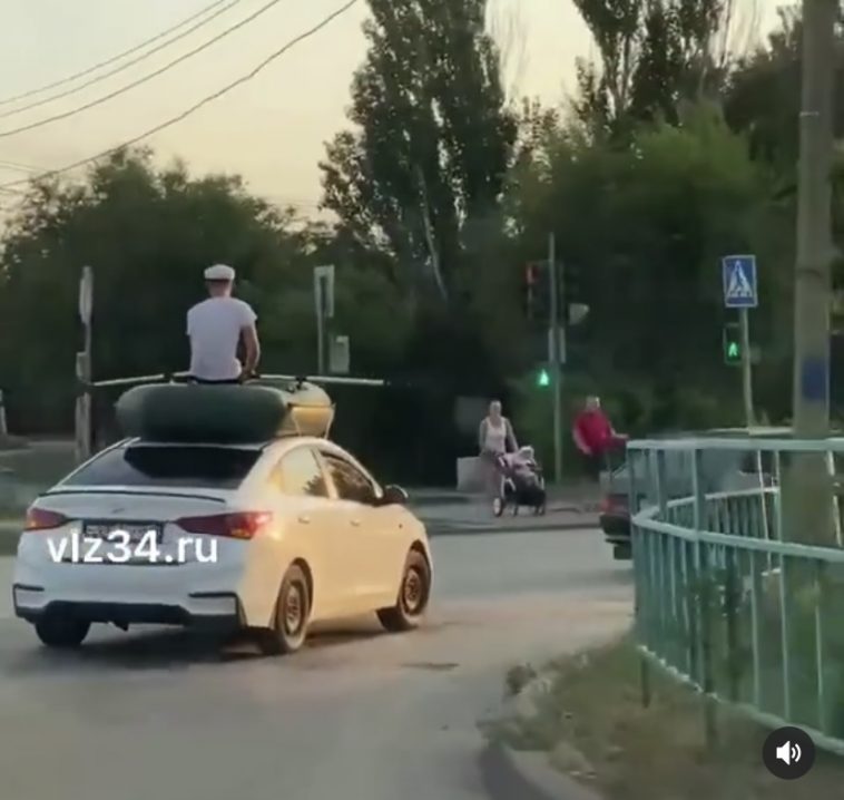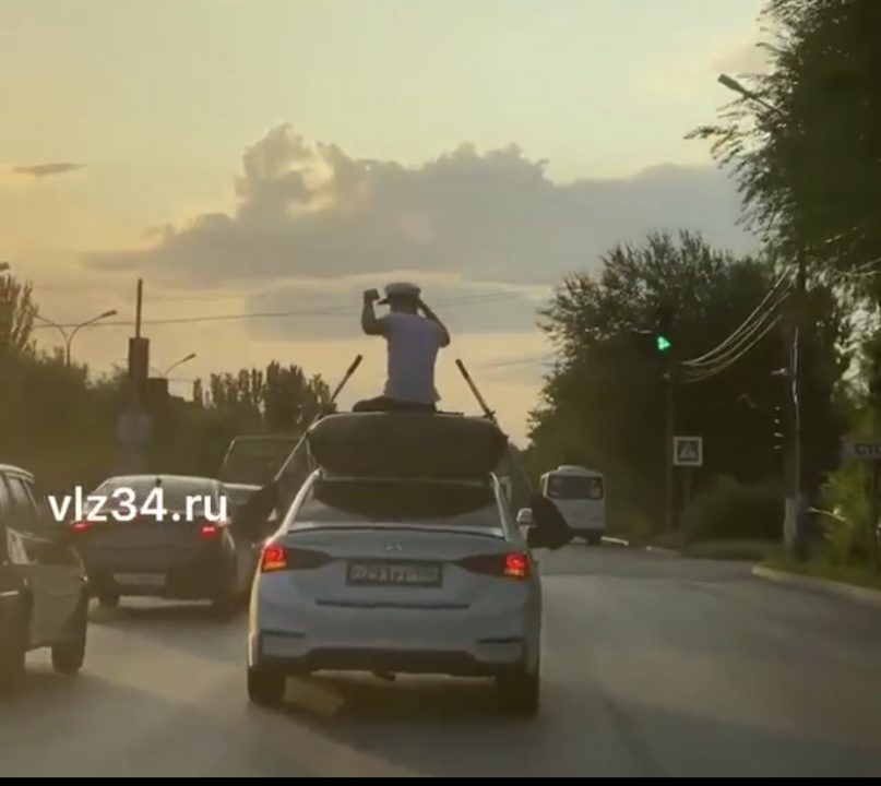 Забавное, но, конечно же, нарушающее все нормы общественного порядка и безопасности видео выложили накануне жители Волжского. В день Военно-морского флота, отмечавшегося в последнее воскресенье июля, 25 числа, они запечатлели иномарку, на крыше которой в надувной лодке сидел парень в форме моряка. Судя по всему, чувствовал он себя вполне комфортно и даже изредка помахивал вёслами.