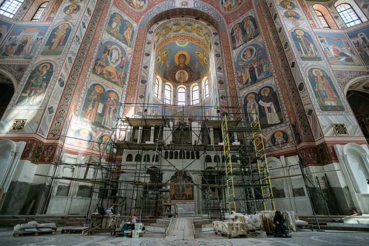 Собор святого благоверного князя Александра Невского совсем скоро распахнёт свои гостеприимные двери для прихожан – работы по возведению храма закончены, остались лишь последние штрихи. Сейчас в соборе завершается роспись стен, одновременно началась облицовка мраморными плитами их нижней части. Также обустраиваются алтарь и иконостас.