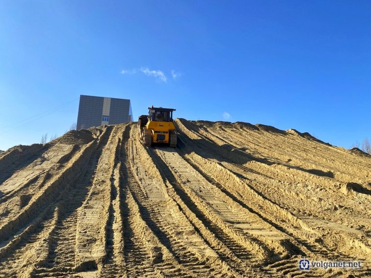 Гигантская песчаная гора выросла здесь совсем недавно. При ближайшем рассмотрении видно, что курган не совсем песчаный.