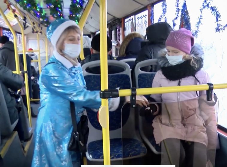 Работники предприятия потрудились на славу, украсив автобус гирляндами и яркими шарами. Водитель – Владимир Пыхтунов – признался журналистам телеканала МТВ, что сразу же согласился на предложение коллег поработать Дедом Морозом. И он, и его Снегурочка – кондуктор Ольга Рябинина – считают, что создают пассажирам хорошее настроение.
