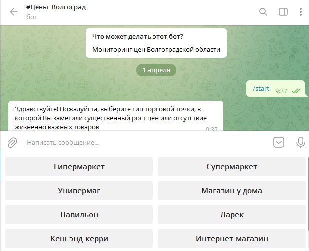 В частности, оперативный штаб заявил о создании чат-бота #Цены_Волгоград в Telegram.