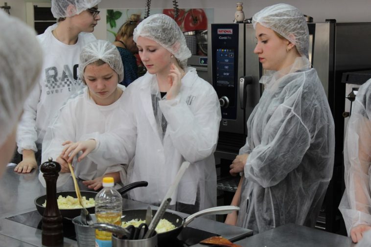 Важно, что старшеклассники не только учились работать с продуктами, но и отрабатывали навык сотрудничества в коллективе. Каждый член команды занимался именно тем, что ему было поручено: один готовил первое блюдо, другой котлету, третий выступал помощником, обеспечивая команду сырьём.