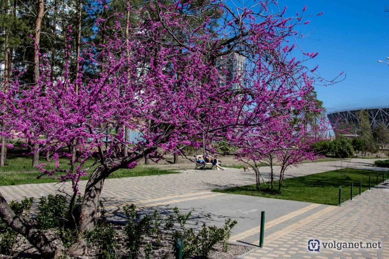 В Волгограде с середины апреля началось активное цветение деревьев. Но если привычные абрикосы, вишни и яблони нас уже не удивляют, то колоритная сакура для волгоградцев пока в новинку.