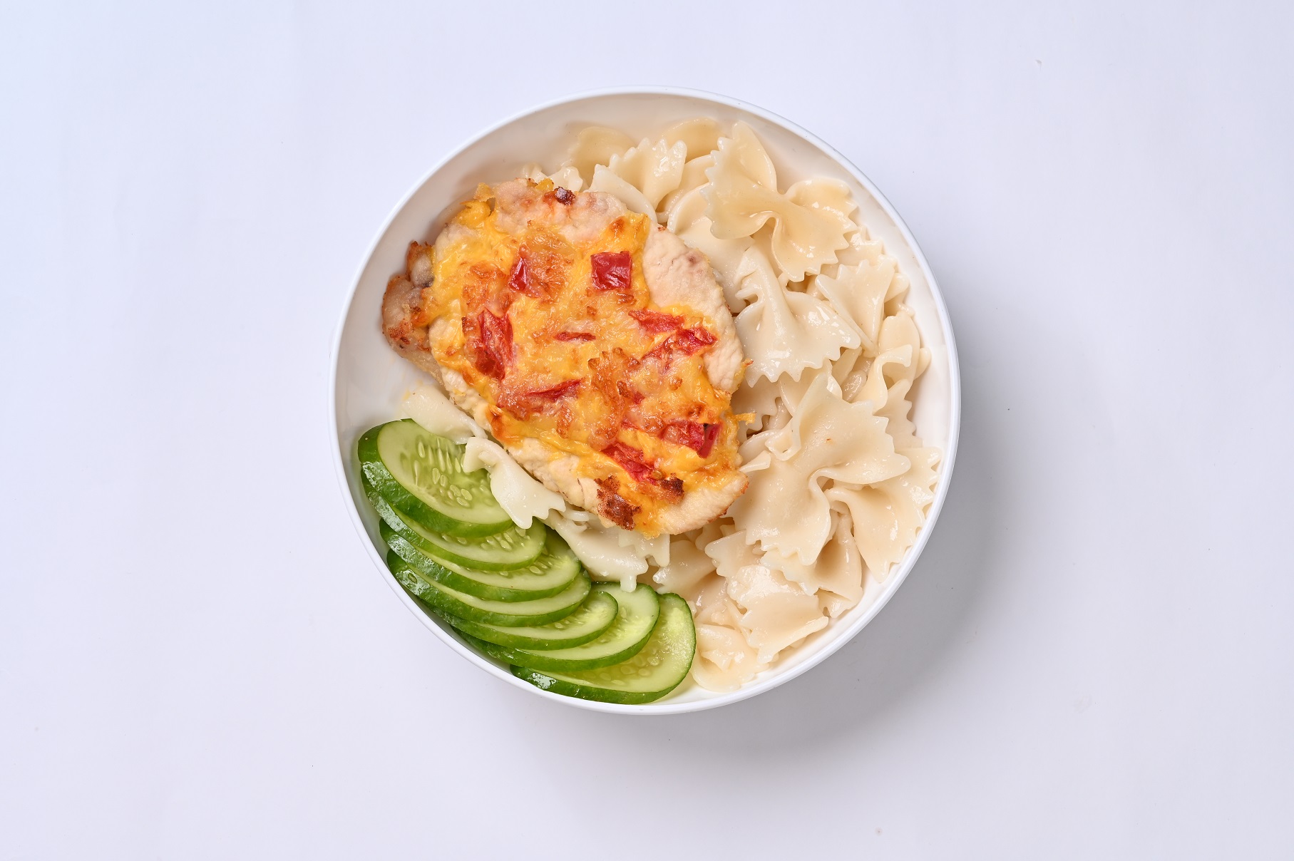 В обеде за 110 рублей школьникам предлагают уже полноценный ланч из второго горячего блюда с мясной составляющей, гарниром, овощной подгарнировкой, хлебом и напитком. Здесь будут и запечённые с сыром пельмени, и куриная отбивная с сыром, и наггетсы с картофелем по-деревенски, и паста «Итальянский сувенир», создательницей которой стала другая финалистка конкурса «Решаем сами» – ученица МОУ СШ №57 Мария Фомина.
