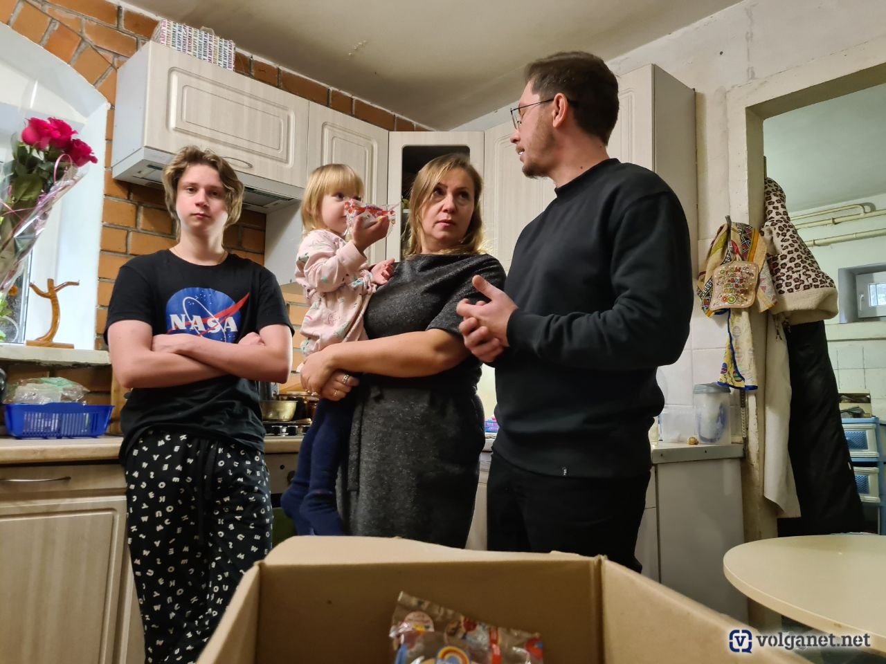 – Здесь живёт многодетная семья, в которой пятеро детей, а отца семейства недавно не стало, – поясняет исполнительный директор «Виво Маркет».