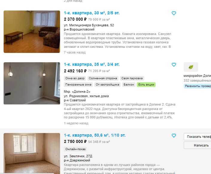 Стоимость двухкомнатных квартир в Волгограде стартует с 3 миллионов рублей, а «трёшки» продавцы оценивают в суммы, начинающиеся от 4 миллионов.