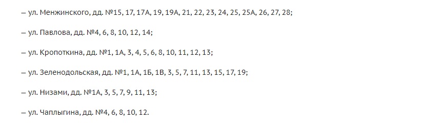 Подача воды с пониженным давлением грозит домам по следующим адресам: