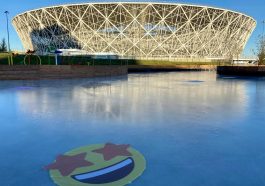 В основном это, конечно, молодёжь: ребята с азартом рассекают ровную гладь катка, с удовольствием позируя у разных смайликов, закатанных под лёд. С такой креативной фотозоной дирекция парка точно не прогадала!