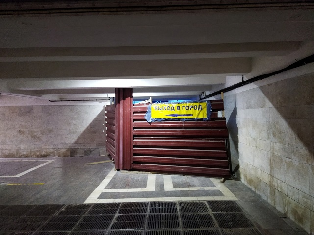 На время проведения капитального ремонта лестницы вход на станцию СТ «Площадь Ленина» и подземный переход осуществляется со стороны проспекта им. Ленина, 38. Вход в подземку со стороны улицы Наумова накрыли шатром – холодно всё ж таки…