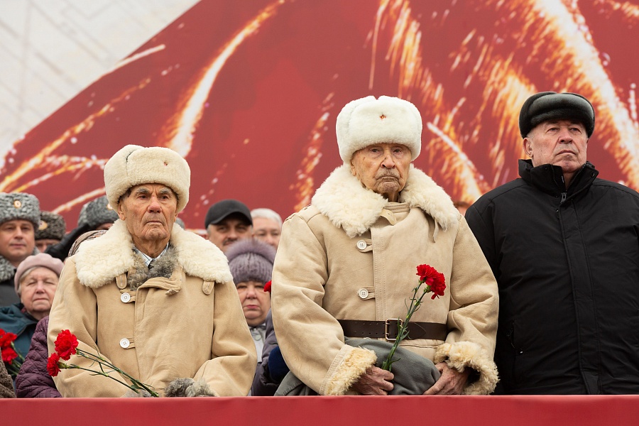 Парад частей Волгоградского гарнизона, посвящённый празднованию 80-летия разгрома советскими войсками немецко-фашистских войск в Сталинградской битве, состоялся сегодня в городе-герое на площади Павших борцов.