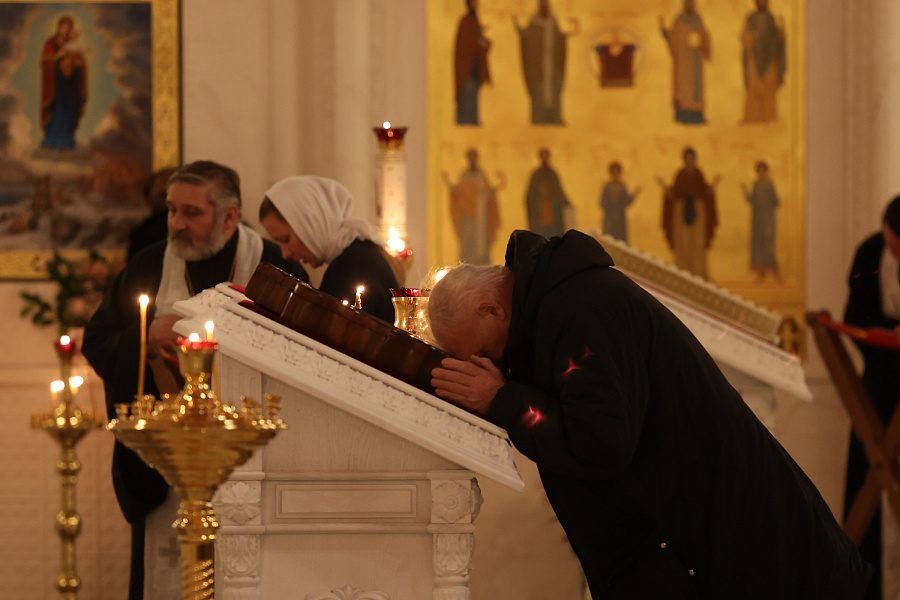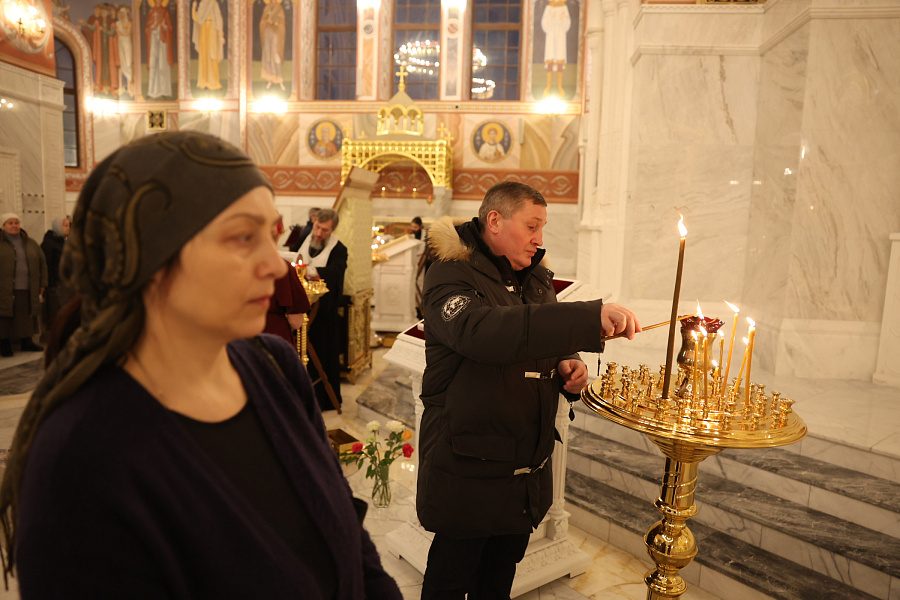 Вместе с верующими собор Святого благоверного князя Александра Невского посетили губернатор Волгоградской области Андрей Бочаров и глава Волгограда Владимир Марченко. Руководители области и города поставили свечи, вместе с прихожанами приняли участие в богослужении.