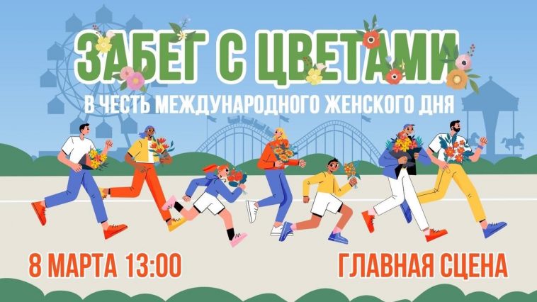 8 марта в 12.00 в ЦПКиО стартует забег с цветами. Принять участие в нем могут все желающие. Главное условие принести с собой букет или хотя бы один цветок. Дистанция забега составит 1 километр; медали ждут победителей во всех четырёх категориях: мальчики, девочки, мужчины и женщины.