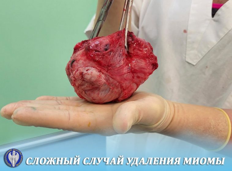 — Сложность состояла в том, что миома находилась в месте, где должен выполниться разрез на матке, что требовало её удаления. Когда есть такая возможность, врачи – акушеры-гинекологи стараются не трогать миому при кесаревом сечении, а удаляют её после родов, т.к. имеется риск большой кровопотери. Но в данном случае удаление миомы было необходимо, — объяснили медики.
