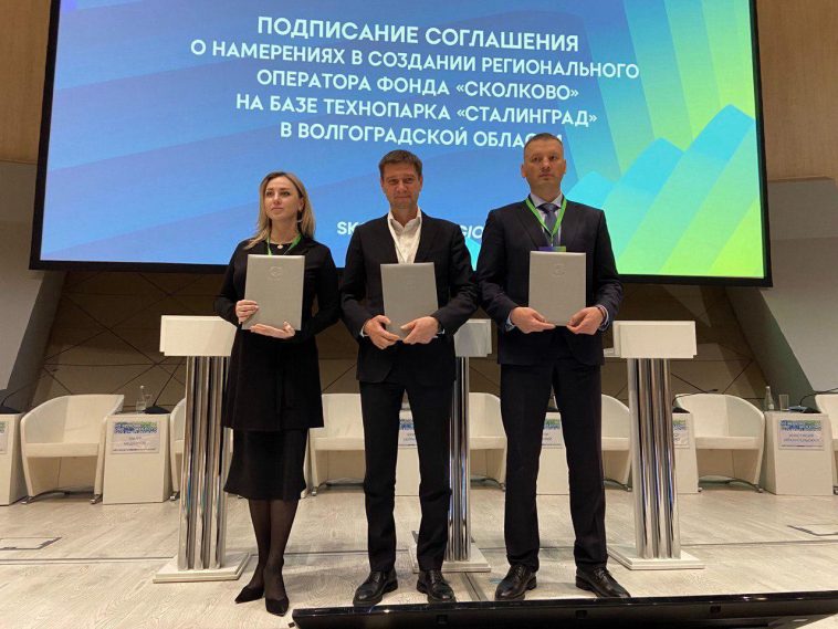 Делегация региона в составе замгубернатора Анны Писемской и генерального директора технопарка «Сталинград» Алексея Цуканова побывала в столице, где подписала соглашение о сотрудничестве с вице-президентом по региональному и международному развитию, управляющим директором фонда «Сколково» Юрием Сапрыкиным.
