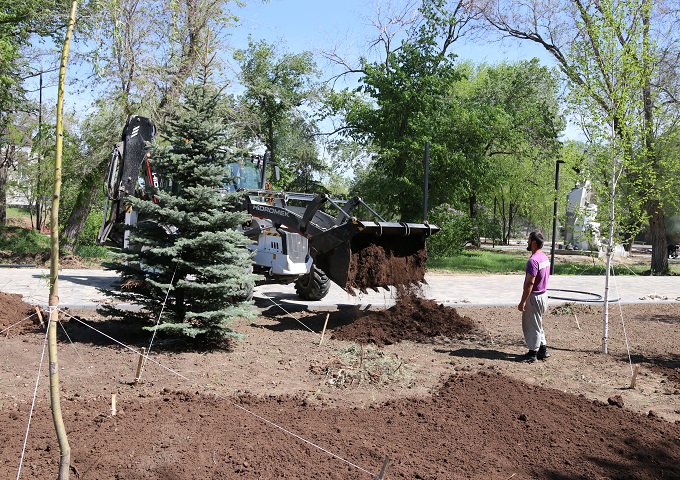 Параллельно ведётся озеленение территории: на сегодняшний день на участке уже высажено порядка 30 маленьких елей, сосен, берёз и ив. Всего же по проекту предусмотрена высадка более 1500 новых саженцев деревьев и кустарников, а также обустройство рулонного и посевного газона.