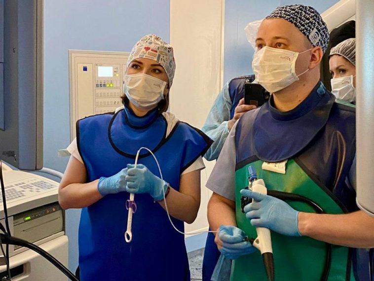 Операция прошла при совместном участии хирургов-эндоскопистов центра и Галины Васильевны Михайличенко, заведующего отделением эндоскопии ГУЗ «ГКБСМП 25».