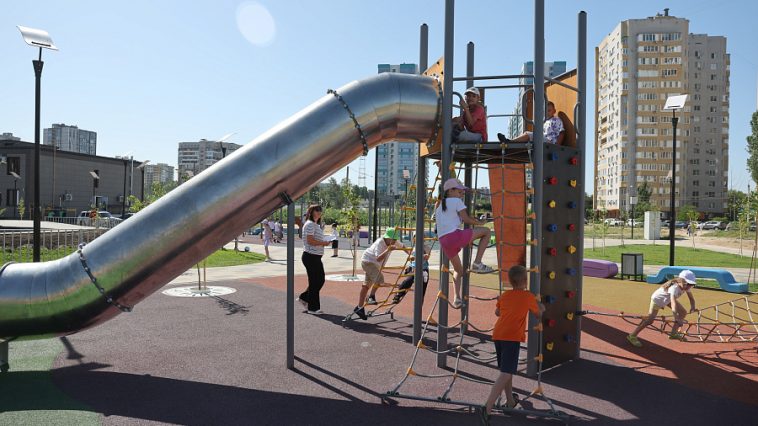В конкурсной документации заявлено обновление асфальтовых проездов, пешеходных дорожек; установка 4-х теневых навесов для посетителей, 20 лавочек и 10 урн.
