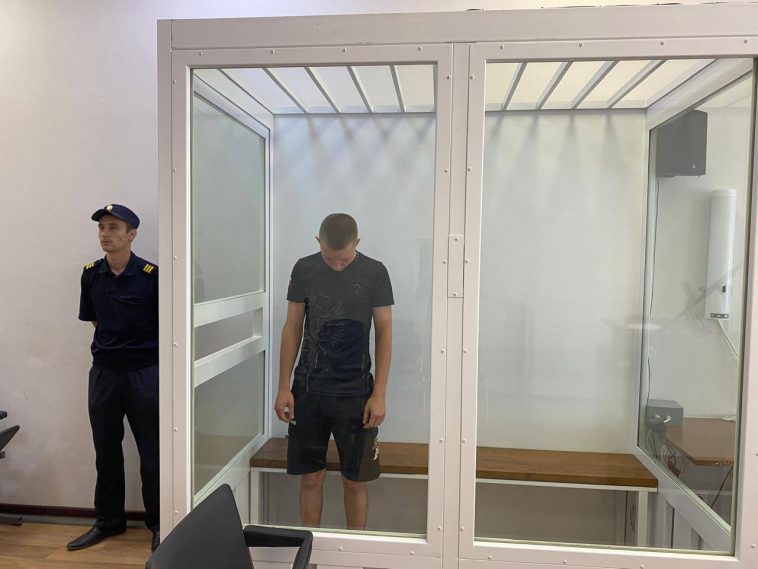 Во время заседания парень всё время стоял с низко опущенной головой.