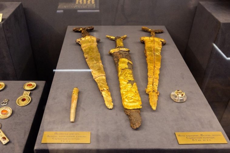 В Волгограде открылась долгожданная, если не сказать сенсационная с научной точки зрения выставка. За ней следит весь научный мир. Подобные предметы в регионе выставляются впервые — это артефакты из захоронений сарматской знати, обнаруженные в одной из промзон Заволжья: гривны, поясные пряжки, кинжал, уникальный мужской браслет. Самые древние экспонаты выставки датируются IV веком до н. э.