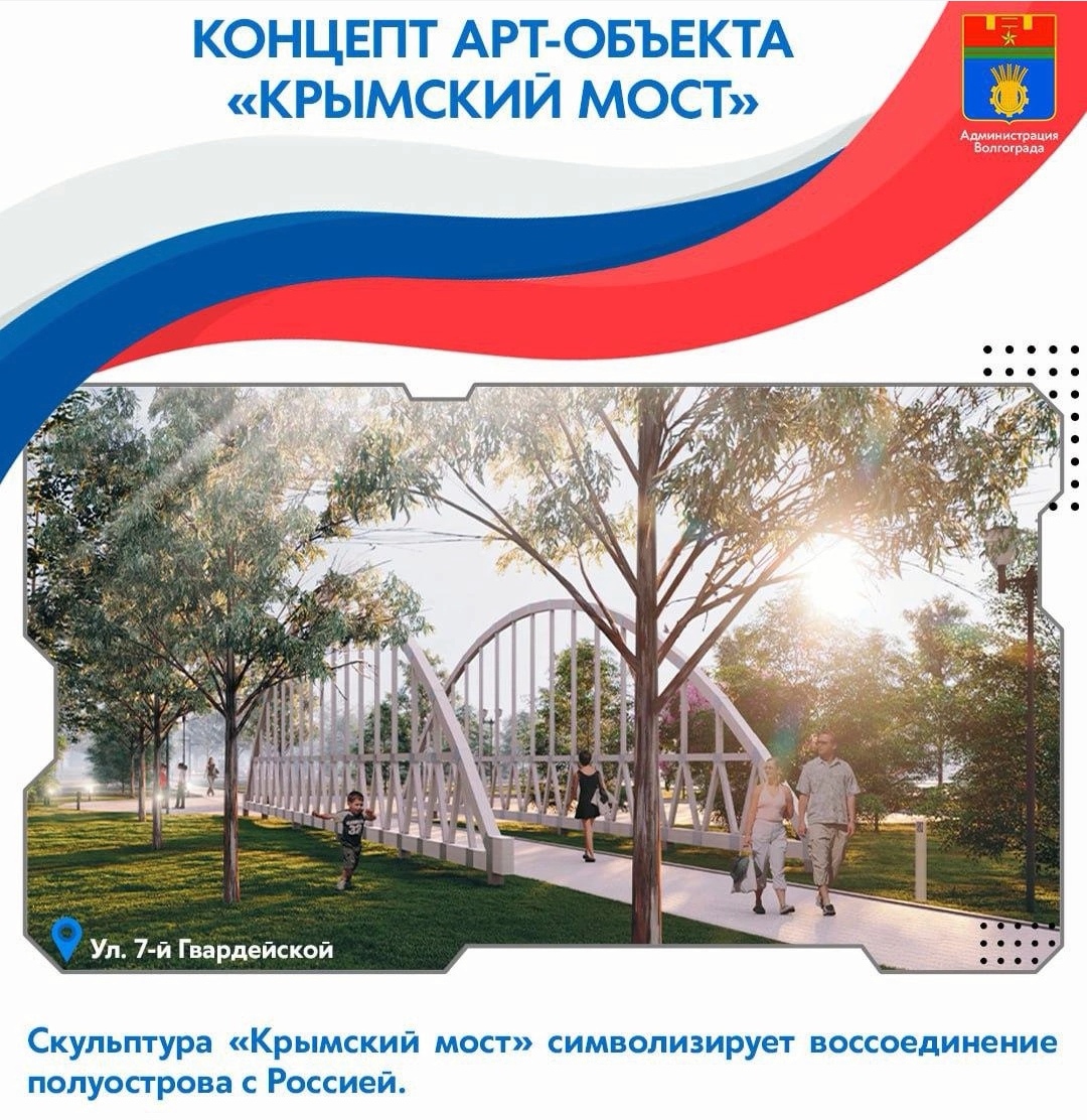 В администрации Волгограда рассказали, что концепт арт-объектов, посвященных новым регионам России, утвержден. А специалисты приступили к изготовлению «Крымского моста», «Графской пристани», «Луганского угля» и других. Большинство конструкция сделают на волгоградских предприятиях. Все они будут установлены в сквере «Мы вместе» на улице 7-й Гвардейской.