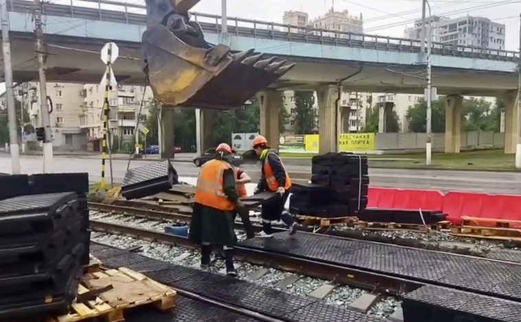 – Ранее здесь специалисты подготовили новое основание пути и смонтировали рельсошпальную решётку, – напомнили в мэрии.