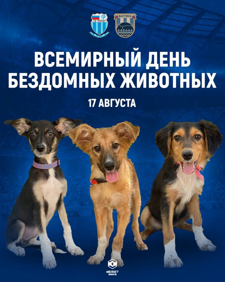 17 августа отмечается Всемирный день бездомных животных. Таким образом, команда «Ротор» планирует поддержать зооволонтёров и их подопечных.