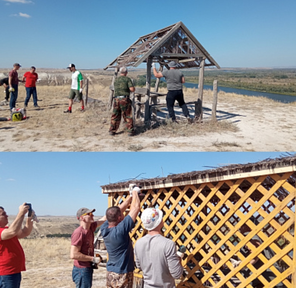 Для комфорта посетителей здесь была оборудована смотровая площадка с парапетом, столиком, лавочками и навесом. За годы службы всё это обветшало. Сотрудники парка и присоединившиеся к ним волонтёры собрали новую беседку, заготовили материал для столбов, опор и поручней. Так смотровая площадка была восстановлена. Остаётся надеется, что созданное руками одних не падёт от рук вандалов.