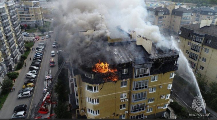 Неприятности в современном жилом комплексе начались почти год назад — один из домов (№91) 12 сентября 2023 года сгорел. Пожар в мансардном помещении несколько часов тушили силами МЧС, ущерб был не шуточный.