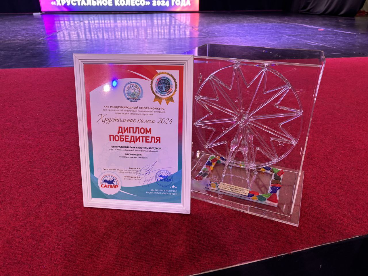 Отметим, что международный смотр-конкурс «Хрустальное колесо» проходит ежегодно и включает в себя 22 номинации. Это одна из старейших и наиболее авторитетных профессиональных состязательных площадок в индустрии развлечений, объединяющей городские парки, аквапарки, развлекательные центры и др.