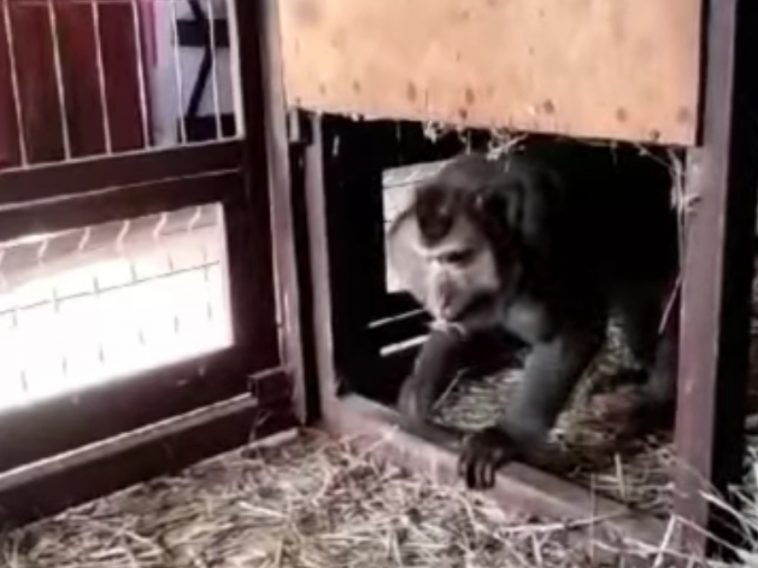 Волгоградские зоозащитники провели ещё одну операцию по спасению животного. На этот раз это свинохвостый макак Джус, который сидел в тёмной клетке одного из местных кафе, якобы развлекая его посетителей.