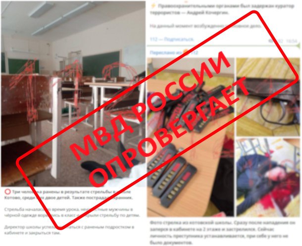 2 октября анонимные телеграм-каналы переписали друг у друга новость о захвате школы в городе Котово. К публикациям прилагались снимки с якобы застрелившимся захватчиком.