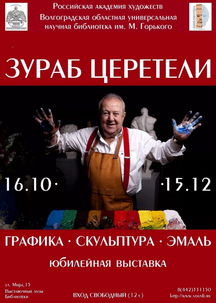 Открытие запланировано на 16 октября, оно пройдёт в выставочном зале Волгоградской областной универсальной научной библиотеки им. М. Горького. Выставка посвящена 90-летию со дня рождения Зураба Церетели, рассказали в облкомкультуры.