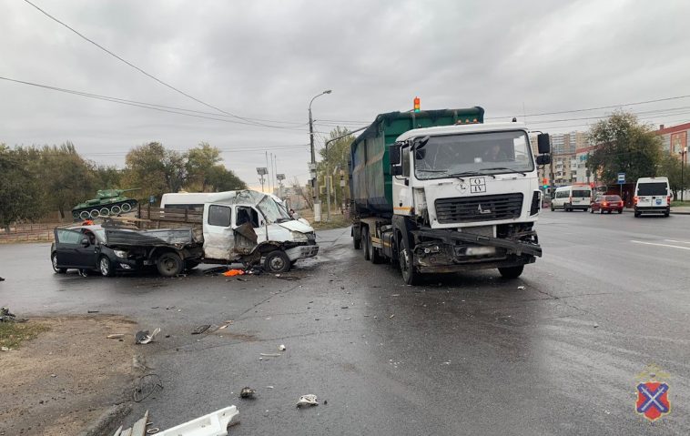 По информации ГУ МВД по Волгоградской области, на пересечении проспекта Героев Сталинграда с улицей Арсеньева произошло столкновение автомобилей «ГАЗель», «МАЗ», маршрутное такси марки «Ситроен» и «Опель». Ход аварии зафиксировали камеры дорожного наблюдения, сотрудники Госавтоинспекции устанавливают все обстоятельства её совершения.