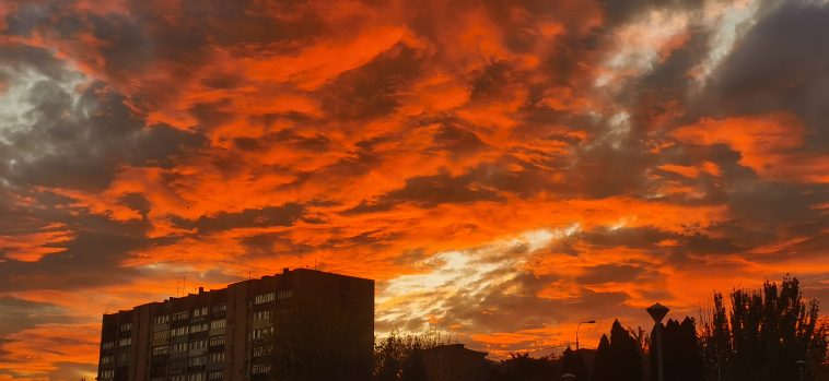 Оранжевый, где-то переходящий в багряный, а в других местах — розовый, засняли волгоградцы. Такой необычный цвет неба многих заставил подольше прогуляться, тем более, что погода позволяла сделать это.