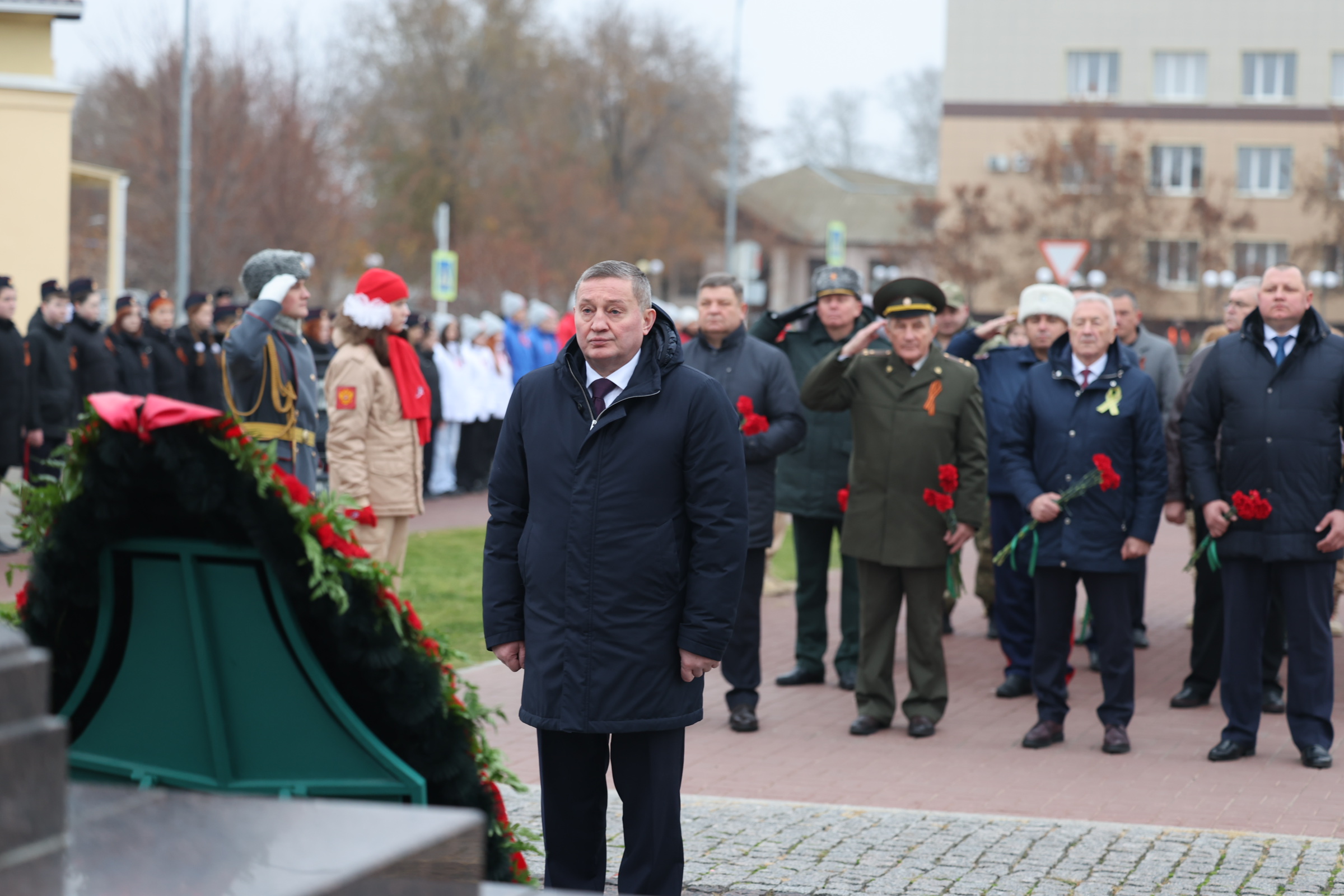 Губернатор Андрей Бочаров с утра отдал дань памяти защитникам Отечества у монумента «Соединение фронтов». А затем в Калаче-на-Дону, у стелы «Город воинской славы» он вместе с участниками СВО, представителями ветеранских, общественных и молодёжных организаций возложил венки и цветы.