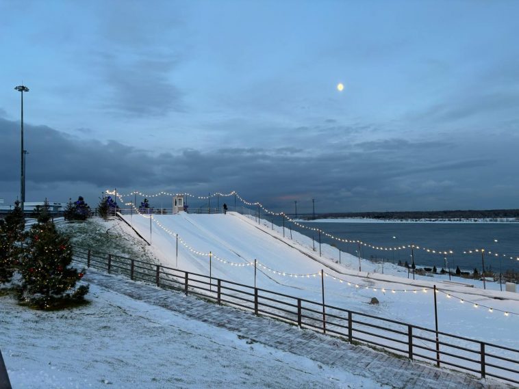 В главном парке Волгограда зима наступила — его покрыл не только «живой», но и искусственный снег. В связи с этим, уже запущены в работу 6 горок — 2 малые и 4 большие.