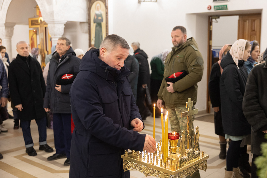 Традиционно к празднованию присоединился и губернатор Андрей Бочаров, который посетил храм Святого праведного Иоанна Кронштадтского в Краснооктябрьском районе.