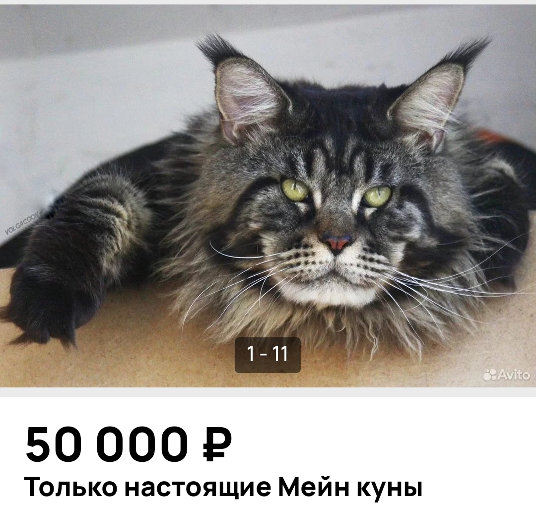 Чуть дороже — 50 тысяч рублей — придётся отстегнуть за котёнка породы мейн-кун, одной из самых популярных в последние годы.