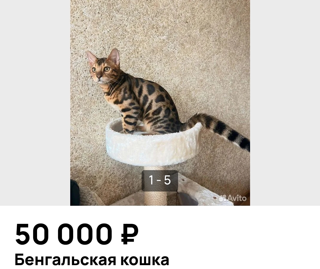 За такие же деньги — 50 тысяч рублей — заводчики в Волгограде продают кошек бенгальской породы.