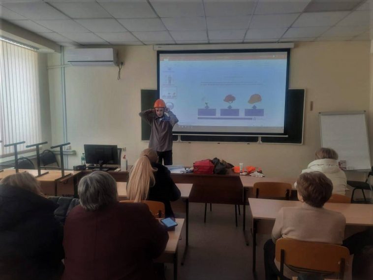 На занятие преимущественно пришли машинисты насосных установок канализационных насосных станций, поэтому особое внимание уделялось средствам индивидуальной защиты органов дыхания.