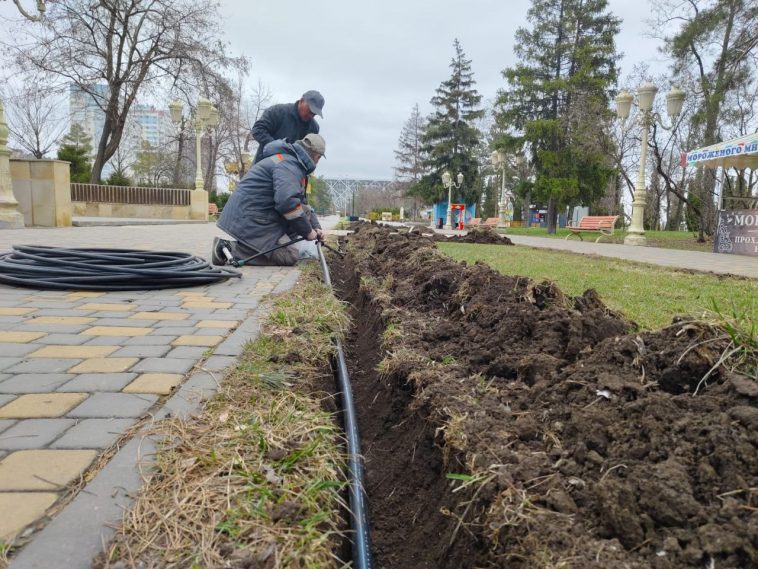 Новую систему полива начали прокладывать в парке «Дружба: Волгоград – Баку». Напомним, он перешёл под управление администрации ЦПКиО осенью минувшего года.