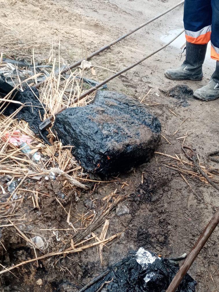 Из трубы и колодца они извлекли огромный ком тряпок и влажных салфеток — всего 70 килограммов. Еще одна находка — большой предмет, похожий на камень или чемодан.