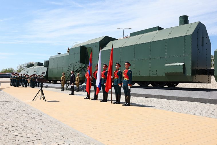 Как сообщили в пресс-службе администрации области, комплекс стал собирательным образом бронепоездов, оборонявших Сталинград и другие города Советского Союза в военные годы. Экспозиция находится в зоне выставки военной техники, вблизи парохода-памятника «Гаситель», также участвовавшего в защите Сталинграда от немецко-фашистских захватчиков.