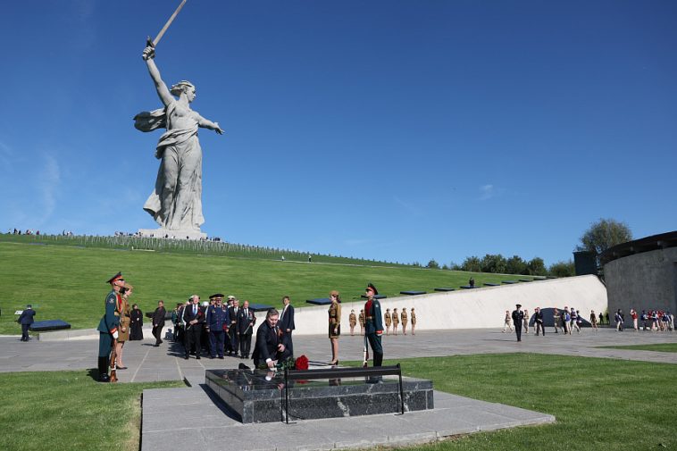 Губернатор региона Герой России Андрей Бочаров вместе с ветеранами, участниками боевых действий, почетными жителями Волгограда и области, руководством надзорных, правоохранительных, судебных ведомств, представителями органов исполнительной власти, религиозных конфессий, нижней и верхней палат Федерального собрания РФ, общественниками, воспитанниками патриотических объединений возложил венки и цветы к Вечному огню в Зале Воинской славы, могиле Маршала Советского Союза Василия Чуйкова, могиле Неизвестного солдата, Малой братской могиле.