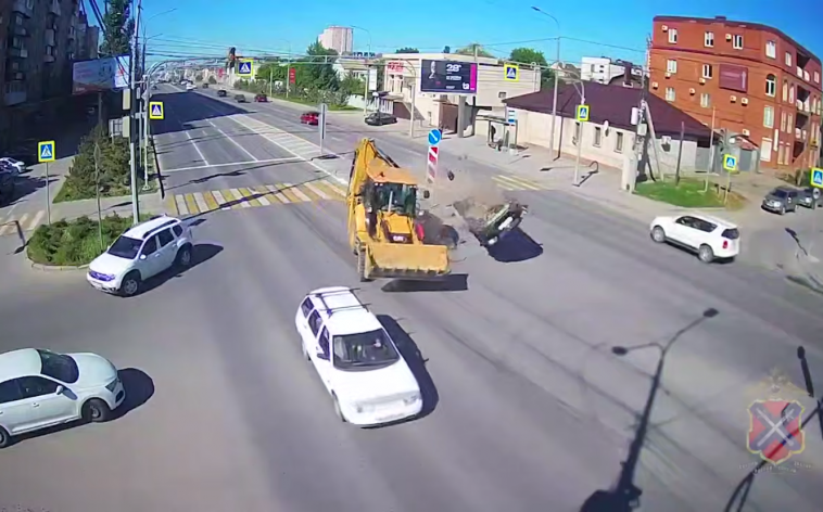 Момент столкновения попал на видео. Судя по всему, одна из легковушек выполнила маневр, в результате которого водитель экскаватора резко повернул руль влево и задел «Ниссан». Иномарку занесло, и она опрокинулась.